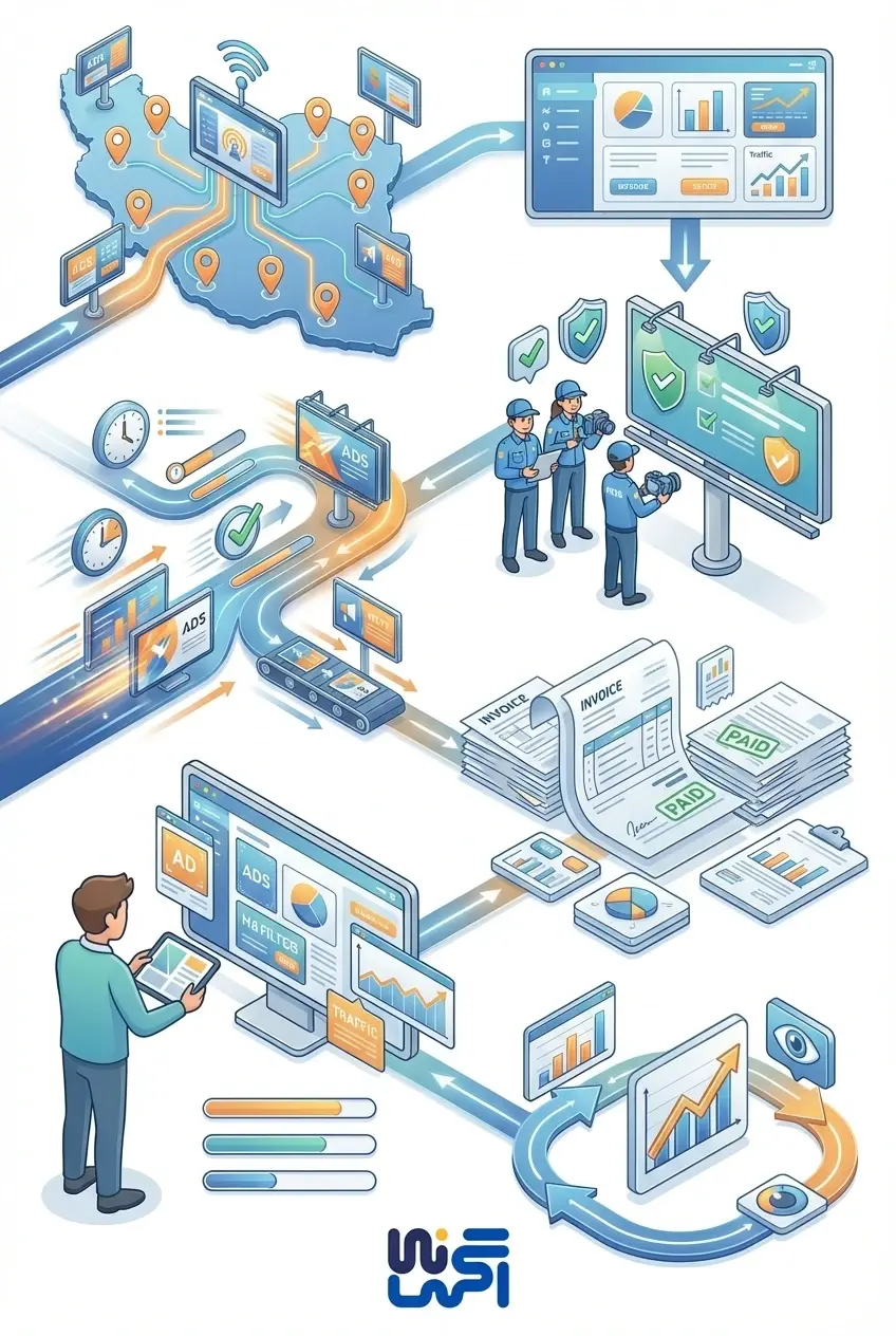 گزارشدهی شفاف و مستمر از لحظه شروع تا پایان اکران، امکان پایش، ارزیابی و بهینهسازی کمپینهای آینده.